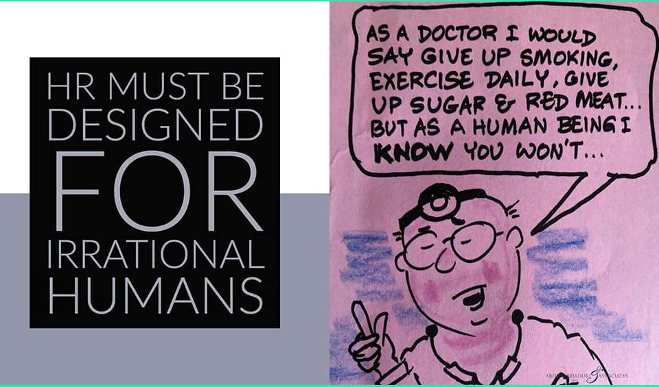Look around and see how much has changed about work and the worker. It is a clear signal that we need to redesign HR. So drop the assumptions of rational human beings. Maybe we will call it Behavioral HR. Google already has taken a lead in this space by starting a lab called Irrational Lab. Maybe it is time for all organizations to start one too where HR will remove outdated policies and replace them with ones that assume people do not make rational choices (mostly).