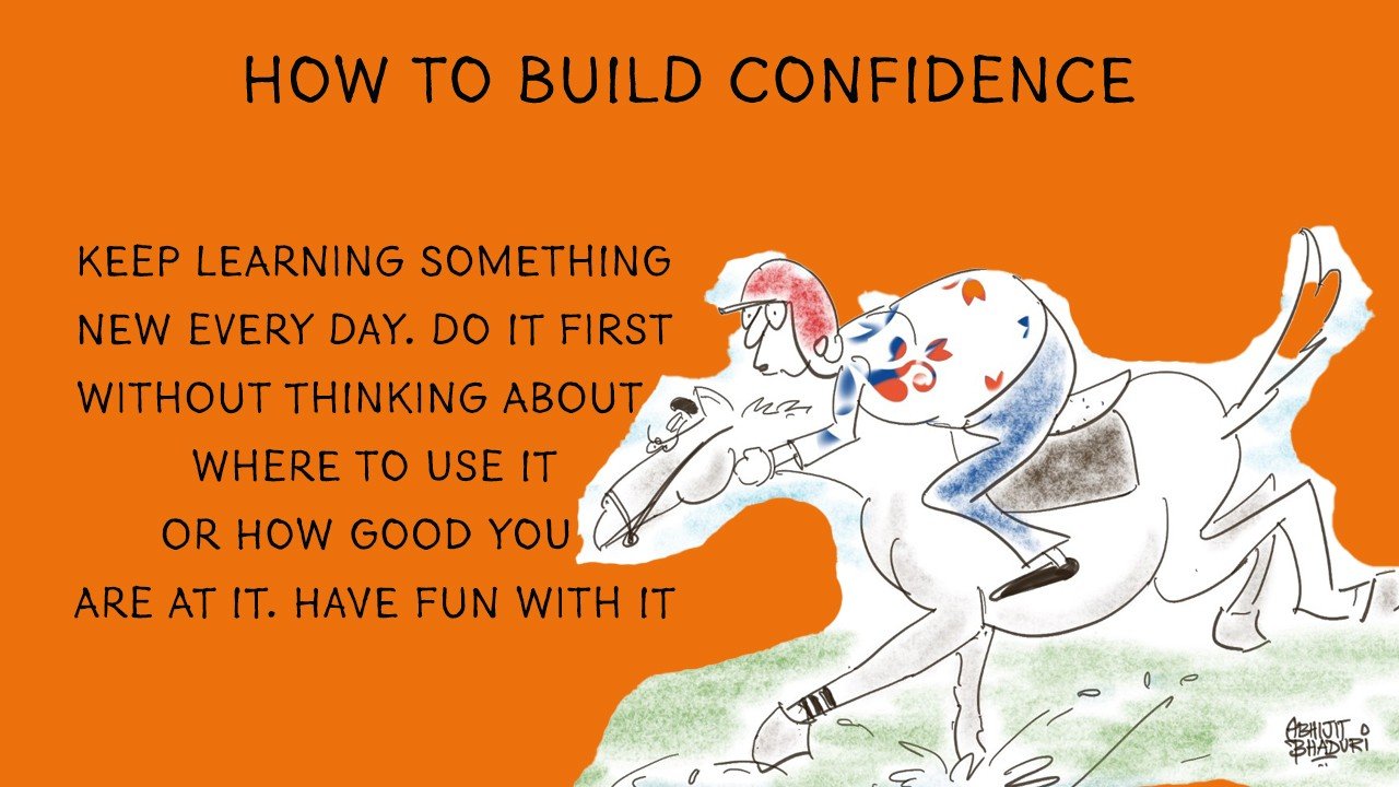 Confidence is a weird thing. Too much confidence makes you believe you know it all. Too much confidence can actually hinder your learning process. If you feel underconfident, you will never put the skill into practice. I tried to learn horse riding but I was so afraid, I abandoned all plans.