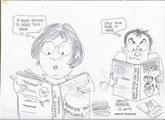Illustration by Abhijit BhaduriDeccan Herald reviewed Married But Available in its Sunday paper dated Jan 25, 2009. Veena Pradeep says“You may however be left with this vague feeling that this is more of a guy’s book rather than a gal’s. If writings of women about and for women that are also read by men are called Chick Lit, what would writings of men about and for men that are also read by women be called? In a way, Abhijit Bhaduri and his ilk may have spawned this new genre of Indian fiction. Can we call it Guy Lit for want of a better term?”I generally get a little wary about classifying books, music, movies into genres and compartments. It is the equivalent of stereotypes that makes us pre-judge a person. We have a liberal list of stereotypes about countries, ethnic groups, gender and any other grouping possible.  Each stereotype puts a set of limitations around what we expect that group to be capable of or not even when it is a positive expectation. When it works in our favor we don’t mind the categorization and yet bristle with indignity when the grouping puts us at a disadvantage.So when my book is classified as “guy lit” it automatically puts me at a disadvantage. Women will no longer read the book I fear. That knocks off half the human race from my readership and I will never make my millions in royalty :). I ask Rascal Rusty for advice. He tells me that it is a good thing for my novel to be classified as “guy lit” because that will make more women read it. They would want to know how guys think. Who does not want to understand how the men in their world think or feel especially about them. I certainly hope he is right.Try this out for yourself. When you go to the bookstore the next time, politely enquire if they have more women buying the books or men. If the cashier is able to get past political correctness, you will hear what the NPR article  confirms what I have always noticed.See what I mean, more women read fiction than men. Some biographies also may be passed off as fiction I suppose – just trying to defend the guys. Hey more guys than gals have read Harry Potter – doesn’t that count? The article hypothesises that women are comfortable with a wider range of emotions than men and perhaps they are buying the books for the men back home to read. Is that true for what you have seen?