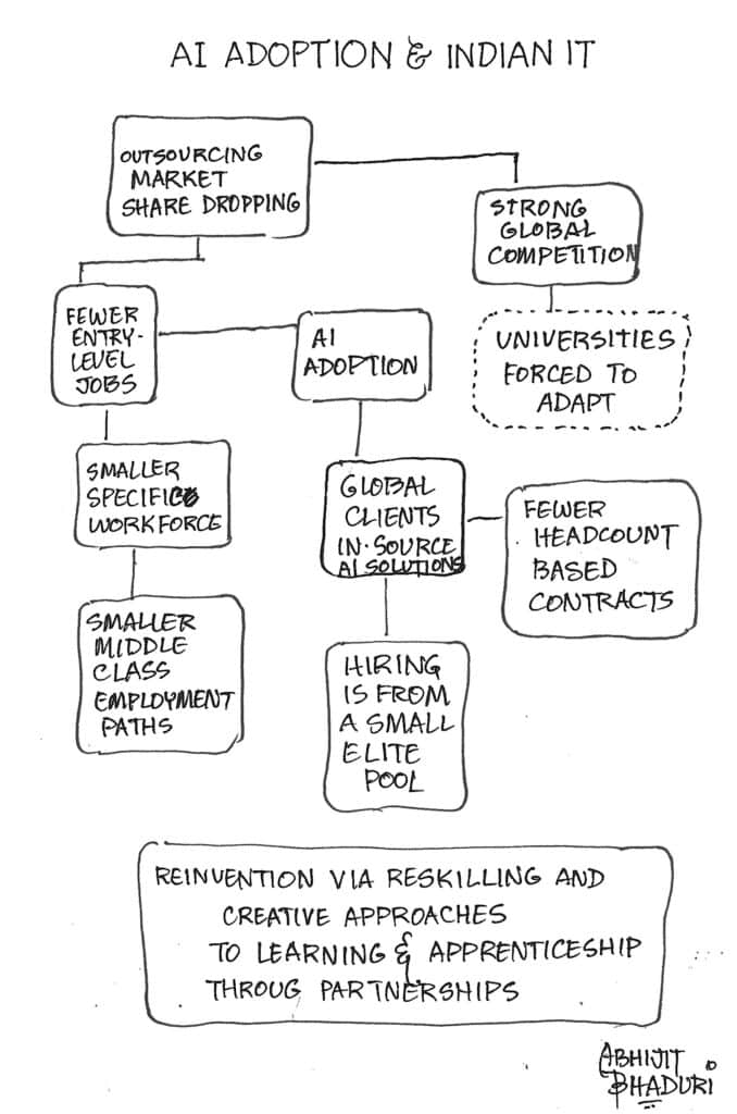 The article rightly highlights the pivotal crossroads India’s IT outsourcing sector faces, one where reinvention is no longer optional but existential. Thanks @Abhijit,a as always for the crystal clear roadmap !!